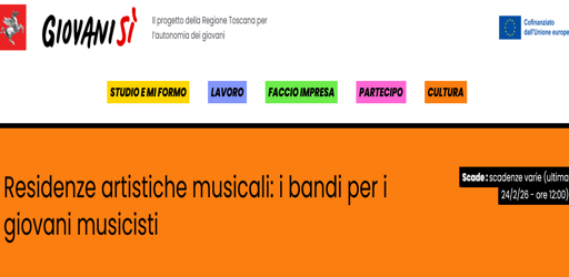 0 Residenze artistiche musicali: bandi per i giovani musicisti Cecilia Concorsi culturali, Opportunità Giovanisì, Spazi e agevolazioni giovani 5 Febbraio 2026