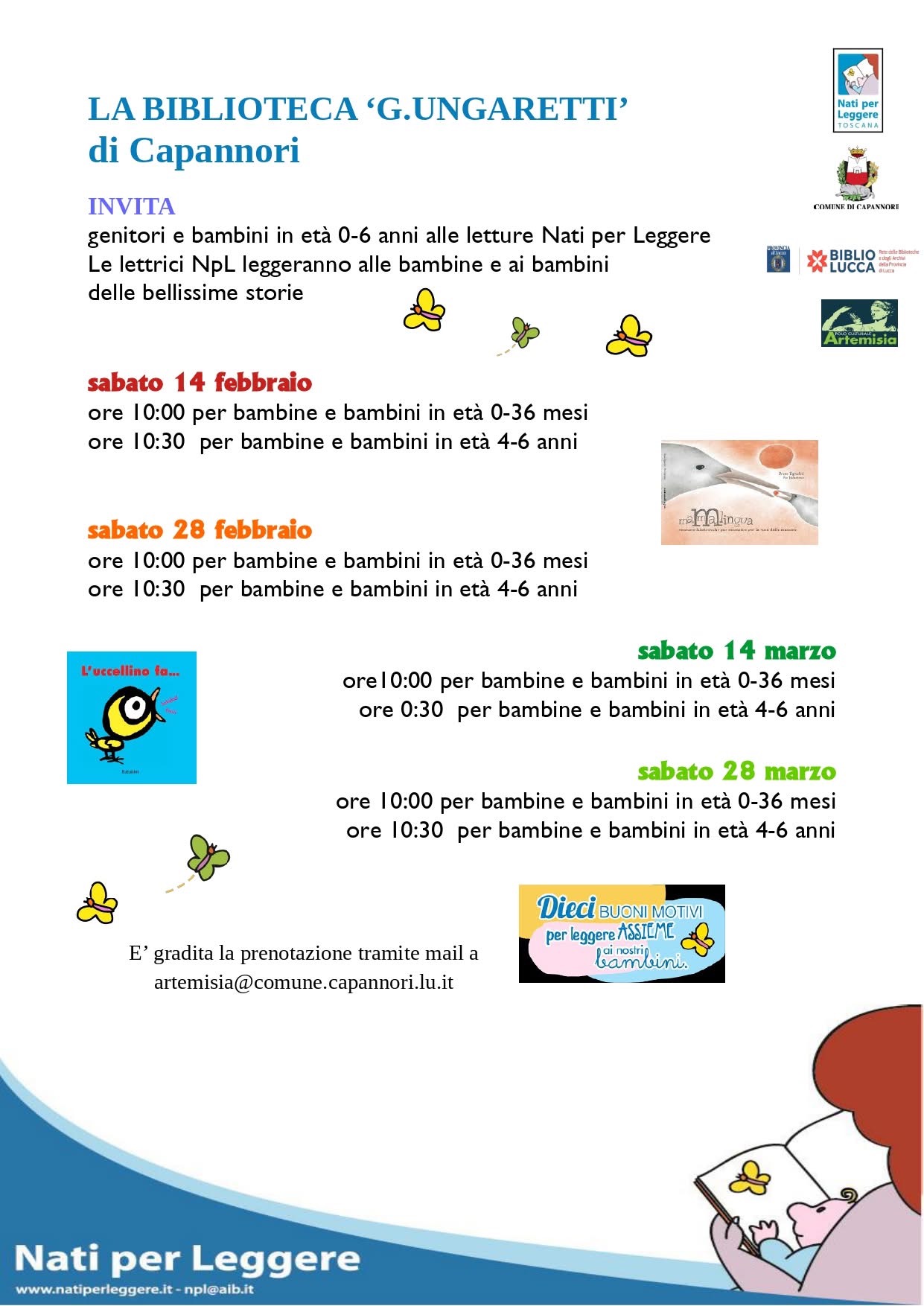 Letture x bambini e bambine a cura dei volontari di Nati per leggere presso la biblioteca G. Ungaretti di Capannori 14-28 marzo