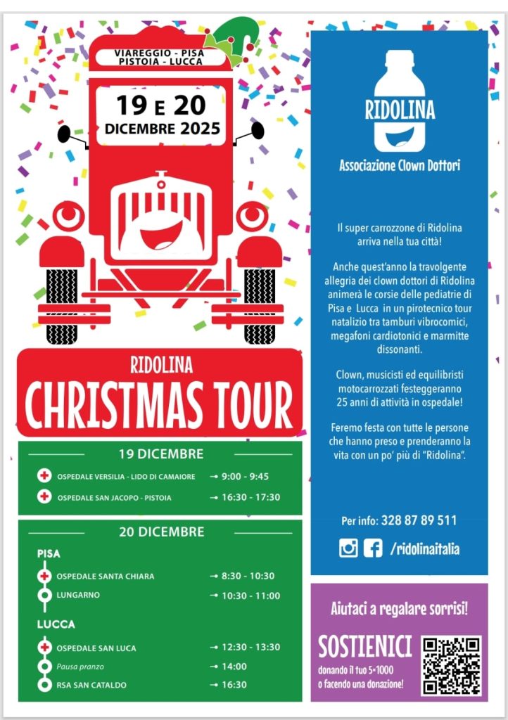 Anche quest’anno in occasione del Natale, l’associazione Ridolina promuove un tour nei reparti pediatrici degli ospedali di Pisa e Lucca e nel reparto RSA di Maggiano.